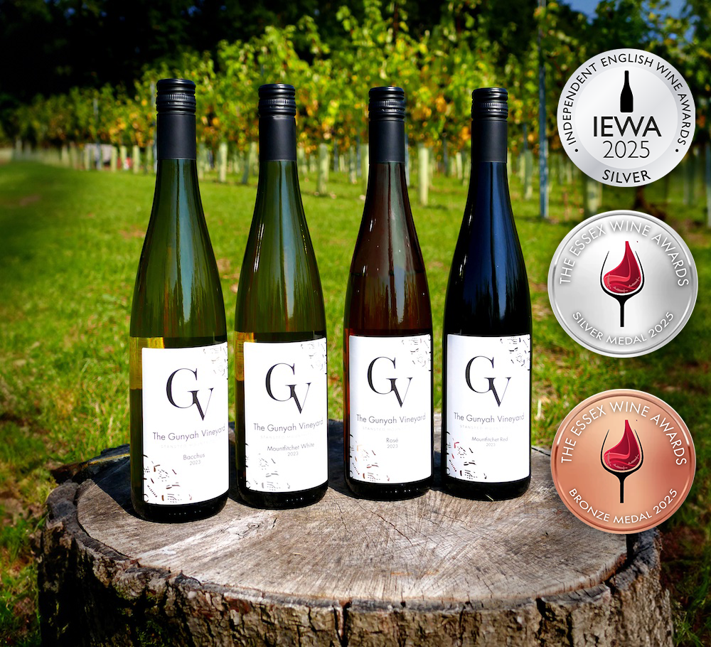 Our Full Range includes our IEWA 2025 Silver Award Winning Bacchus 2023 and our Essex Wine Awards 2025 Silver Award Winning Rosé.